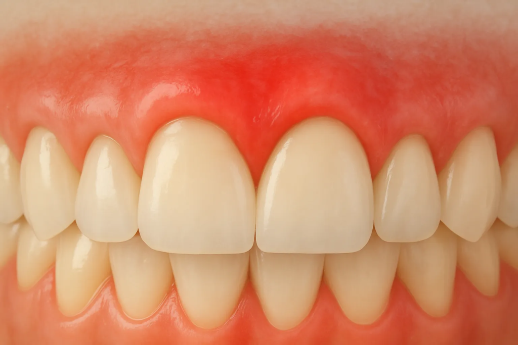 - Gingivitis (erken evre diş eti hastalığı): Genellikle kızarıklık, hassasiyet ve şişlikle kendini gösterir. Tedavi edilmediğinde daha ileri seviyelere ilerleyebilir.